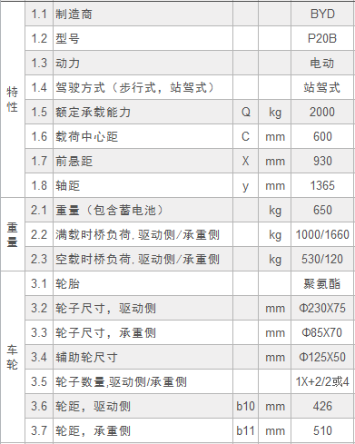 注:為了產品的可持續發展,比亞迪叉車有權修改產品功能和技術參數,恕不另行通知。